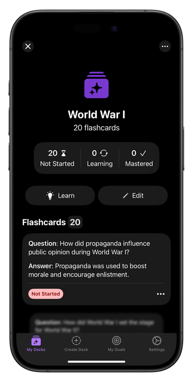 Say goodbye to forgetting. Our spaced repetition system ensures you review the right cards at the right time—maximizing long-term memory without burnout.